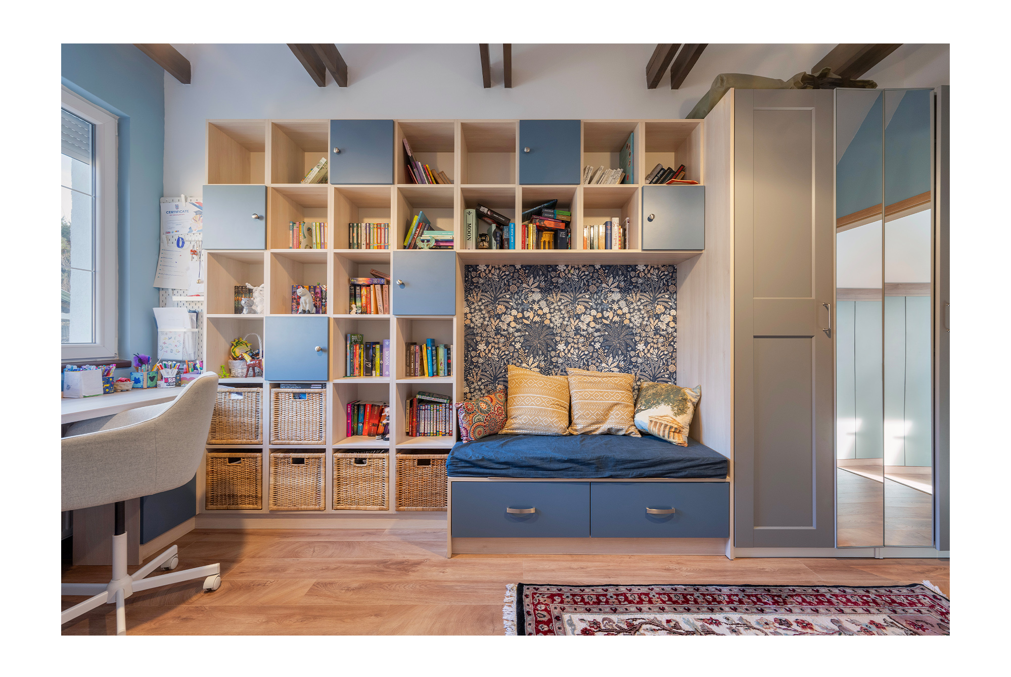Megrendelői kérés volt, hogy a gyerekszobákba ötletes, egyedi bútorokat tervezzünk, figyelembe véve a gyerekek életkorát, érdeklődési körét és kedvenc tevékenységeit.