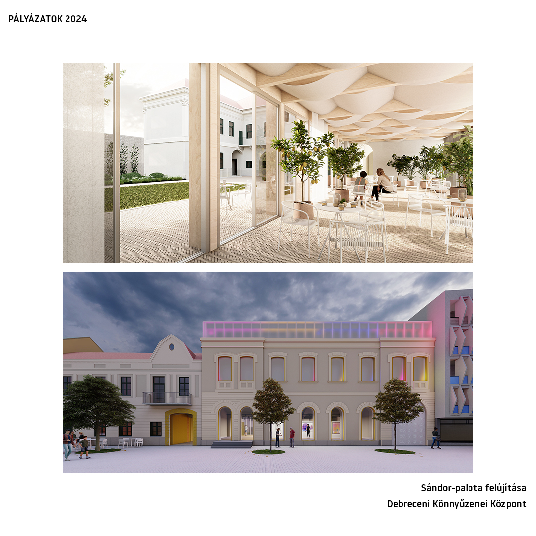 A 2024-ben kiírt tervpályázat célja Debrecen városközpontjában egy olyan kulturális központ tervezése volt, amely három meglévő épületet összekötve magában foglal előadó- és koncerttermeket, vendéglátó- és szálláshelyet, valamint az azokat kiszolgáló tereket. Csapatunk nagy lelkesedéssel dolgozott a terven és sikerült III. helyet szereznünk a pályázaton.