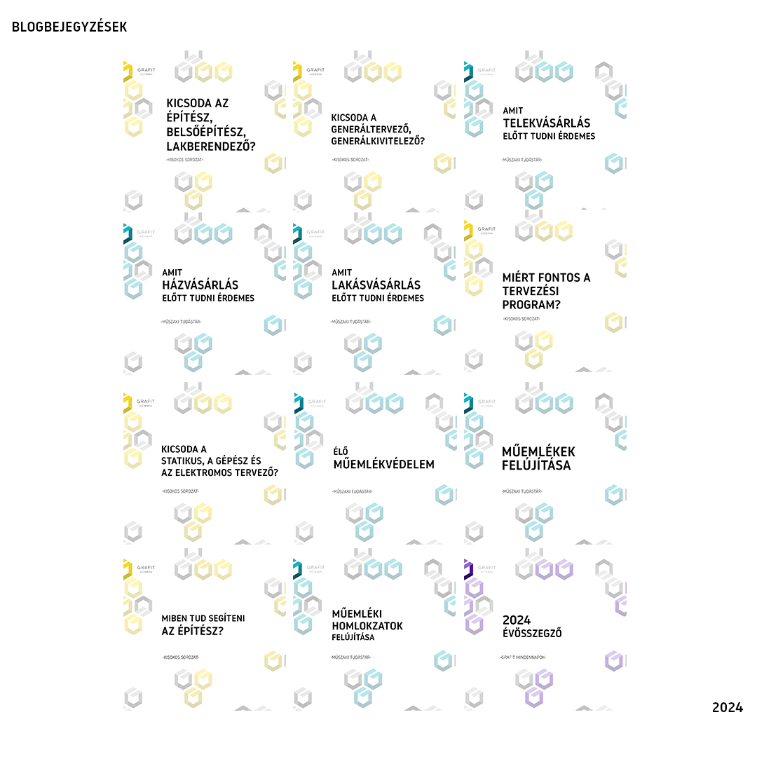 2024 volt az az év, amikor blogunk útjára indult. A kezdeményezés célja az volt, hogy olvasóink, megrendelőink és akár partnereink betekintést nyerhessenek az építész- és generáltervezők mindennapjaiba, a hozzánk érkező kérdésekbe, megoldandó problémákba. Márciustól kezdődően három témában publikáljuk írásainkat, amelyekkel reméljük, hogy segítünk eligazodni a tervezés és az építkezés sokrétű világában.