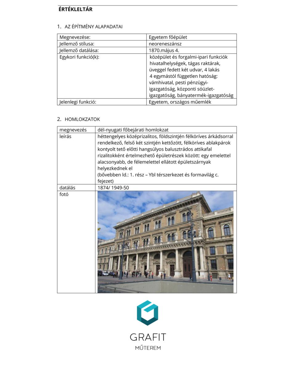 ÉPÍTÉSTÖRTÉNETI TUDOMÁNYOS DOKUMENTÁCIÓ