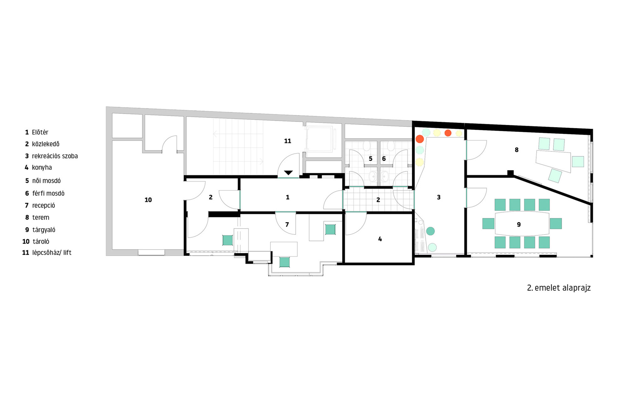 TELJES PROJEKTNÉV: Green Corner Irodaházban bérelt iroda előtereinek belsőépítészeti kiviteli terve